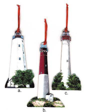 For the holidays, we are delighted to offer shore ornaments from D.W. Possum Designs of Barnegat Light. Handcrafted in their studio by Vivienne and J.M. Sponge Washburn, these pieces are lovingly printed from original paintings. Their studios work has been represented by galleries in 38 states, Europe and Japan. |