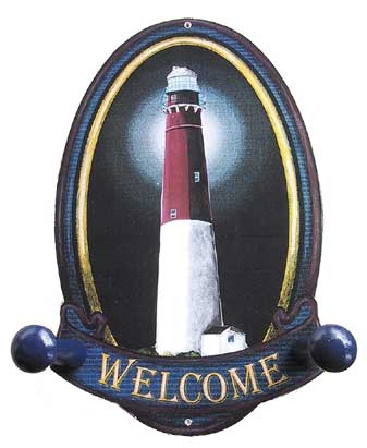 Also from D. W. Possum, we offer this welcoming coat rack. This wood plaque, featuring the famous Barnegat Lighthouse, has large shaker pegs, and beckons you to hang your winter wear, as well as those sandy sweatshirts and beach hats. |