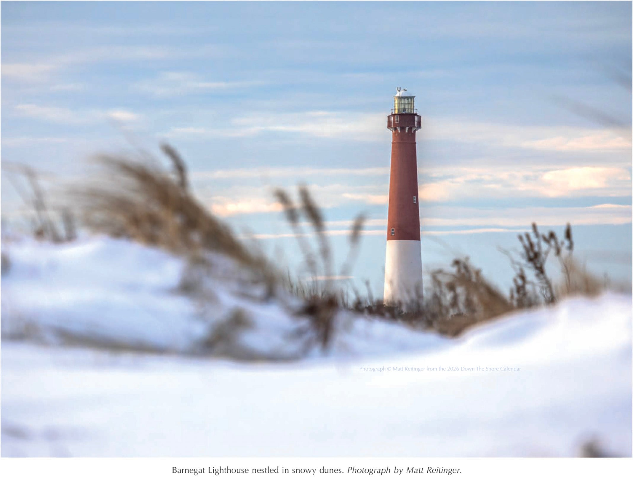 Snowy Barnegat Light. Photograph © Matt Reitinger from the 2026 Down The Shore Calendar