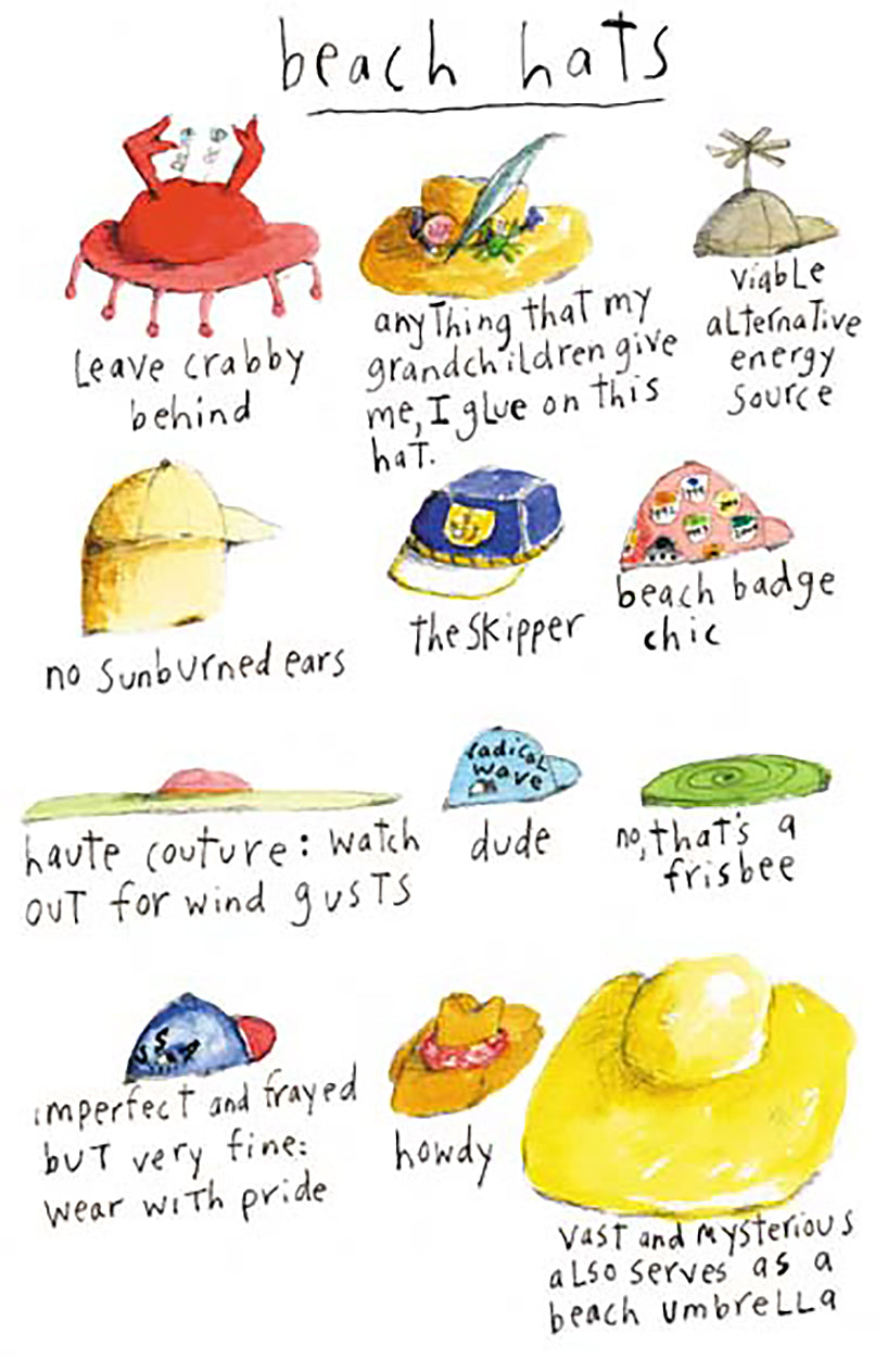 In this charmingly serendipitous book, the writer addresses a number of topics in forms varying from the poetic essay, to pages of delicate drawings and even a rebus. Where she begins is probably where all beach lovers begin, with a childhood memory. She describes the family car trip, the arrival in the "overgrown driveway" of the summer house, running onto the beach, the open ocean, the high sun. That memory is universal because, as she points out, "this moment never really happened. A couple of parts maybe, but the rest is a mixture of fiction and dream and desire." This ability to describe that powerful mix of reality and dream and desire is what Gingras does so well. This gift, reflected in her earlier books like How To Live On An Island and How To Live At The Beach, allow her to transcend her particular beach place and create something that all beach lovers (and probably those who don’t love the beach) can recognize.